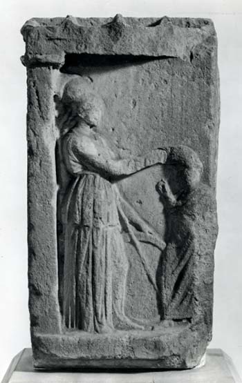 In Hellenic myth, Maat also forms part of the powers of Athena and enacts many of the powers behind the great Olympian relating to truth in order, a role she shares with the highest Aphrodite whose functions are Athena's higher levels. The name of Athena means 'truth' and much like Maat, the concept was taken rather literally, particularly in forming the civic identity of the Athenian people in their various government and legal systems. Her presence in Greek life on the lower levels, such as in various marble fragments and stelai found across the Hellenistic world, show her crowning the honorand of a great work, institution and contest in a way that was visible and permanent to the Greeks and Romans.26 This was part of the symbolic language of truth; in this role, Maat is also a patroness of history, the valid recording of data for future generations to witness.