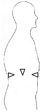 The I's are pronounced as EE, as in the word "see." The "GH" is guttural and made in the back of the throat, not as a hard guttural K, but as a smooth sound. "ZH" is pronounced as the French "J" as in "Jacques." Again, D is pronounced as "THE" as given above. Align your chakra as shown in the illustration below.